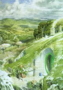 gemütliche Hobbithöhle bei einem deftigen Mahl zurücksehnen. Doch damit war es vorerst mal vorbei, denn er befand sich, holterdipolter (mal wieder von Gandalf überrumpelt) zwischen einer Schar Zwerge, die nach Osten wanderten, als eingestellter Meisterdieb wieder. So brachen also 13 Zwerge, ein Zauberer und ein (unglücklicher) Hobbit am 27. April im Jahre 2941 des dritten Zeitalters in Hobbingen auf, um sich nach dem Weg nach Osten zum einsamen Berg zu machen. Im ersten Teil ihrer Reise werden Bilbo und die Zwerge die gleiche Strecke zurücklegen wie 60 Jahre später sein Neffe Frodo und seine Gefährten Sam, Merry und Pippin in der Geschichte Der Herr der Ringe,